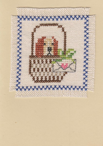 Faltkarte bestickt mit Hund im Korb A4,1Â